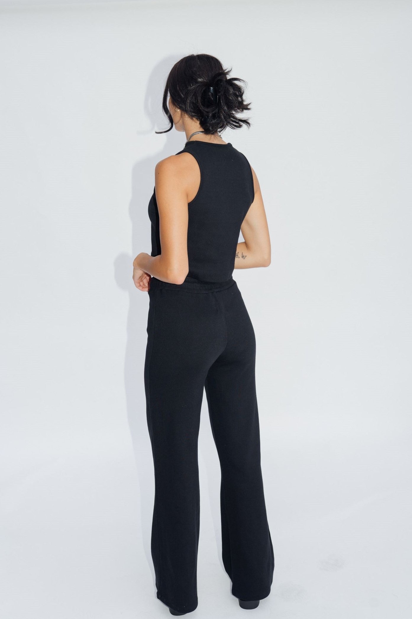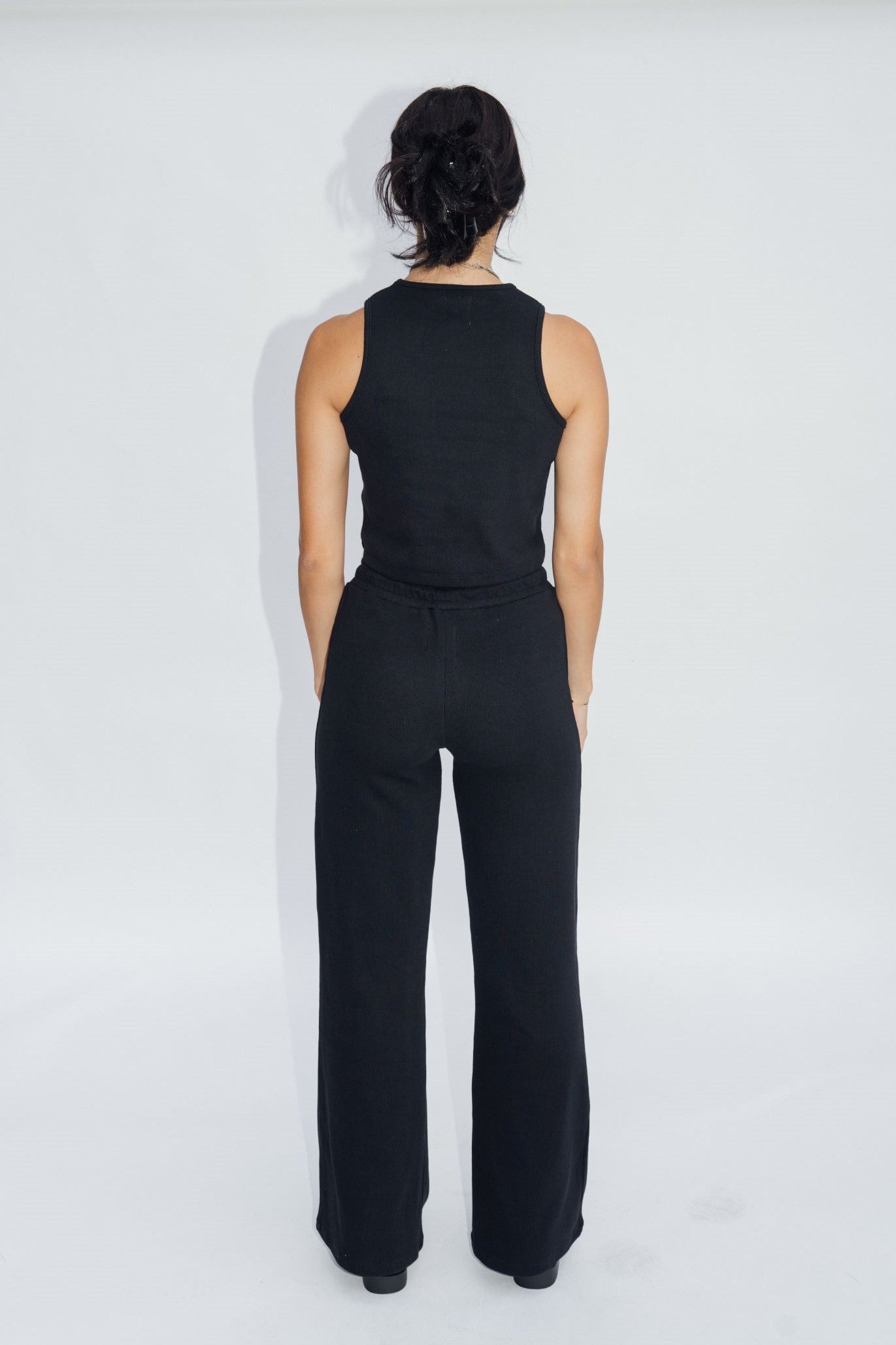 Our Wide Leg Lounge Pants in Jet Black are the quintessential loungewear staple. They feature a relaxed fit and cream rope drawstring. Made with super thick and stretchy ribbed organic cotton.